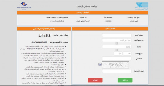 8-در صفحه ی آخر با وارد کردن اطلاعات خواسته شده و سپس زدن دکمه ی پرداخت ، عملیات پرداخت را انجام دهید .