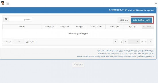 5-طبق شکل زیر ، افزودن پرداخت جدید را کلیک کنید: