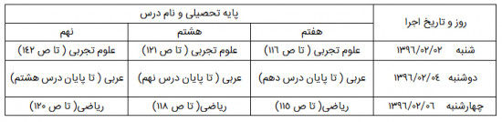 برنامه زمان بندی و بودجه بندی آزمون هماهنگ اردیبهشت ماه 96 واحدهای آموزشی دوره اول متوسطه