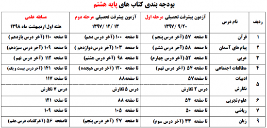 بودجه بندی آزمون پیشرفت تحصیلی پایه هشتم
