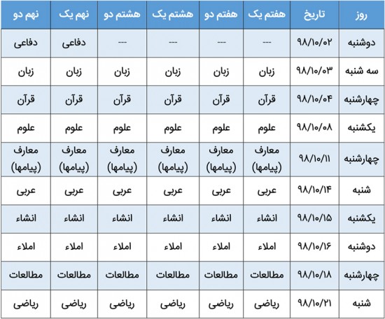 برنامه امتحانات دی ماه 1398 (نوبت اول)