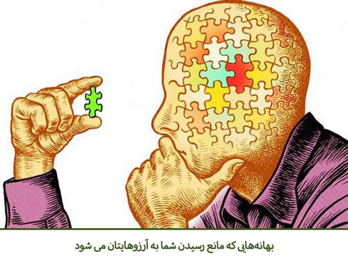 بهانه ها معمولاً دو دسته هستند: بهانه های "کافی نبودن ها" و بهانه های "خیلی زیاد ها" در زیر به بعضی از متداولترین بهانه هایی که افراد برای دنبال نکردن آرزوهایشان برای خود می آورند و راههایی برای غلبه بر آنها اشاره میکنیم:
