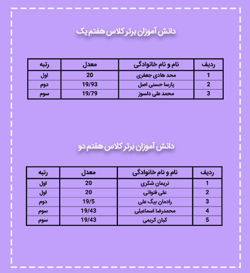 نفرات برتر پایه هفتم