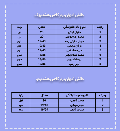 نفرات برتر پایه هشتم