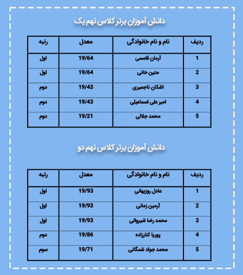 نفرات برتر پایه نهم